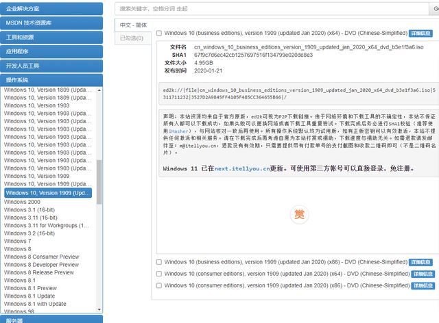 百度搜索msdn,在網(wǎng)頁(yè)左邊選擇操作系統(tǒng)。按需要的系統(tǒng)下載,我這里點(diǎn)擊的是win10 1909版本。